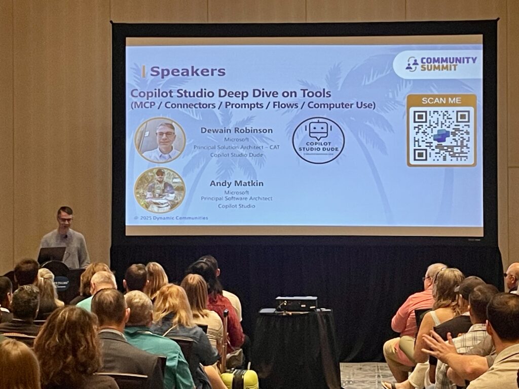 “Copilot Studio Deep Dive on Tools” was led by Dewain Robinson, Principal Copilot Studio Solution Architect at Microsoft. He was joined by Andy Matkin, Principal Software Engineer at Copilot Studio, who closed the session with a focus on Model Context Protocol (MCP). This session provided a great example of practical walkthroughs and presented content for the first time, which will be the basis for future videos on Copilot Studio.