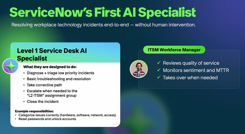 ServiceNow said it’s internally using the Level 1 Service Desk AI Specialist to resolve IT cases and that it’s been 99% faster than cases that are handled by human agents.