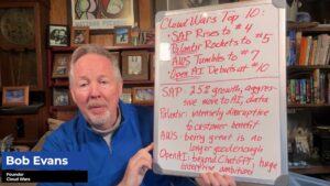 Cloud Wars Minute Cloud Wars Top 10: SAP Rises to #4, Palantir Rockets to #5, AWS Tumbles to #7, OpenAI Debuts at #10By Bob EvansJanuary 13, 2026