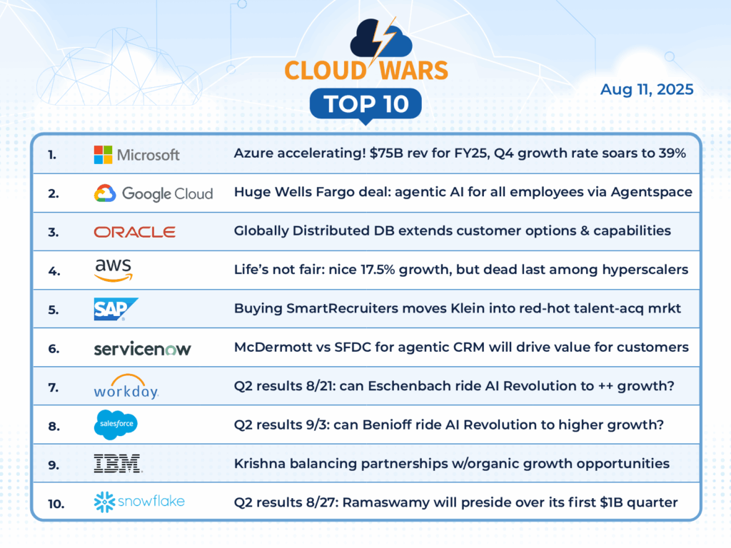 As business leaders make momentous decisions in deciding on which AI and cloud hyperscaler to wager the future of their companies, I think it’s entirely appropriate for Nadella — and the CEOs of all the Cloud Wars Top 10 companies as well — to speak clearly and aggressively about the many virtues and attributes of Microsoft. And to do that, it’s sometimes — often? —necessary to put that POV in context for customers by framing it around how well competitors can or cannot match up.